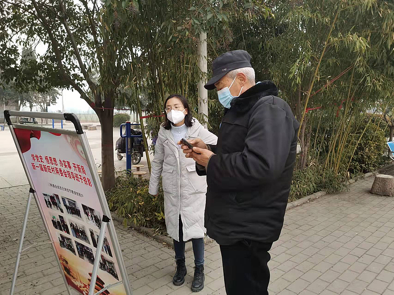 紀(jì)洋洋在新旺村向村民講解核酸檢測(cè)流程