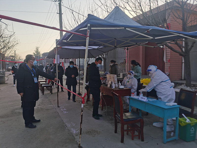 ?12月25日,新一輪核酸檢測(cè)開始,卻逢天公不作美,寒風(fēng)中夾雜著雨雪侵襲而至,科元公司的魏廣樂、紀(jì)洋洋卻已在拂曉之時(shí)抵達(dá)新城新旺村核酸檢測(cè)點(diǎn),開始了布置設(shè)備、調(diào)試系統(tǒng),引導(dǎo)村民有序排隊(duì)、保持科學(xué)距離、做好自身防護(hù)和掃描一碼通等工作,確保核酸檢測(cè)有序開展,不漏一戶、不漏一人。當(dāng)村民反映因管控原因吃飯買菜有困難時(shí),他們及時(shí)反饋情況,認(rèn)真摸排走訪,按戶送菜到家,將新城和集團(tuán)的關(guān)懷和溫暖及時(shí)送到每家每戶手中。?