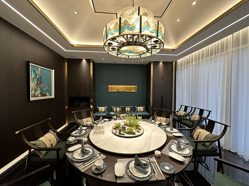 餐廳采用新中式設(shè)計風格,以古典文化結(jié)合現(xiàn)代時尚,整體環(huán)境簡約、雅致、有韻味,場景結(jié)構(gòu)和氛圍營造構(gòu)建出空間體驗感,帶給用餐者極致的視覺感受。