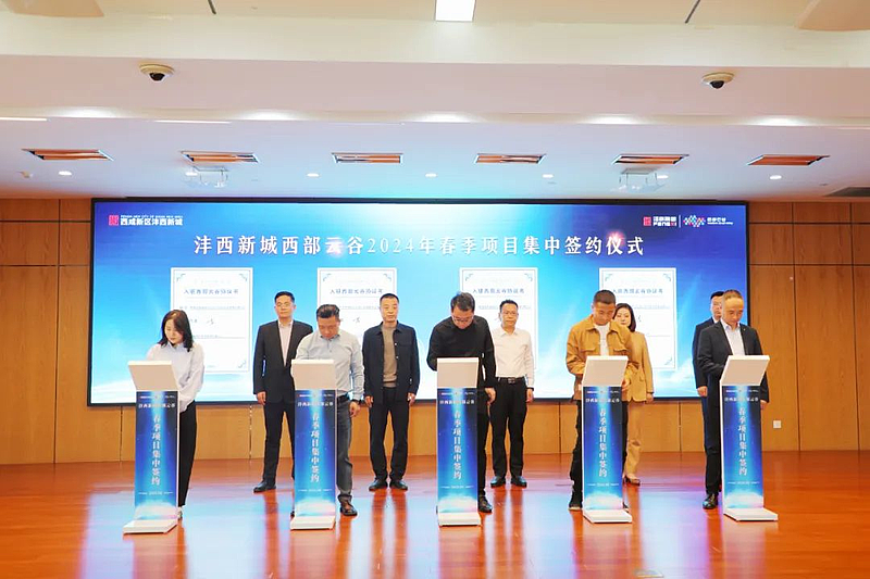 4月18日,灃西新城西部云谷2024年“拓啟新程,聚勢(shì)謀遠(yuǎn)”春季項(xiàng)目集中簽約儀式順利舉辦,灃西集團(tuán)黨委書記、董事長楊建柱,黨委副書記、總經(jīng)理郭廷喜,黨委委員、副總經(jīng)理秦繼紅,灃西新城管委會(huì)招商一部部長蔡文麗出席。