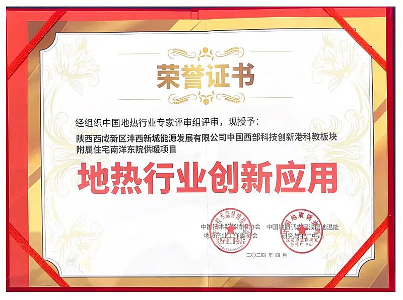 灃西能源憑借在地?zé)犷I(lǐng)域的卓越貢獻(xiàn)與創(chuàng)新應(yīng)用,以中國西部科技創(chuàng)新港科教板塊南洋東院供應(yīng)項(xiàng)目申報(bào)榮獲地?zé)嵝袠I(yè)“創(chuàng)新應(yīng)用獎(jiǎng)”。作為新城踐行綠色低碳發(fā)展理念、探索能源綜合利用的實(shí)踐主體,灃西能源緊抓高質(zhì)量建設(shè)陜西唯一中深層地?zé)崮茉圏c(diǎn)示范區(qū)的機(jī)遇,成功構(gòu)建了以中深層地?zé)崮芫C合利用為特色的智慧能源應(yīng)用新模式。近年來,在中深層地?zé)崮軣o干擾清潔供熱及能源利用方面取得顯著的社會(huì)、環(huán)境、經(jīng)濟(jì)效益。截至目前,已在全國推廣應(yīng)用中深層地?zé)崮軣o干擾清潔供熱超過2600萬平方米。