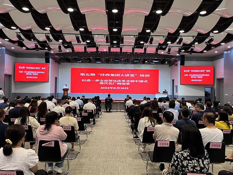 為深入學習領會黨的二十屆三中全會精神,深刻認識全會進一步全面深化改革、推進中國式現代化的主題,8月20日下午,灃西集團舉辦2024年第五期“灃西集團大講堂”,特邀陜西省委黨校科社教研部主任張進蒙進行專題授課。黨委書記、董事長楊建柱,總經理郭廷喜和其他在家班子成員參加。