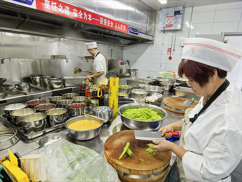 走進餐廳,映入眼簾的是明亮干凈的就餐環境,桌椅擺放整齊,用餐氛圍舒適,后廚整潔有序,專業廚師團隊從食材挑選到烹飪出品,每道工序都嚴格把控,讓大家吃得更安心。