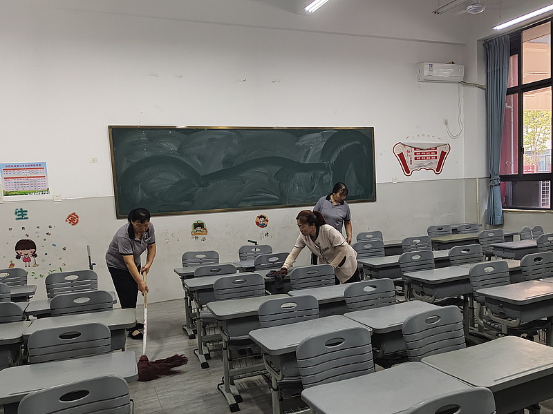 從教學樓到宿舍樓,從主干道到操場,灃西服務嚴格執(zhí)行標準化作業(yè)流程,開展全覆蓋深度清潔,并對衛(wèi)生間、教室等重點區(qū)域進行徹底消殺,確保校園環(huán)境健康安全。同時積極配合校方開展綠植養(yǎng)護與景觀煥新工作,以盎然綠意和清新面貌迎接師生歸來。