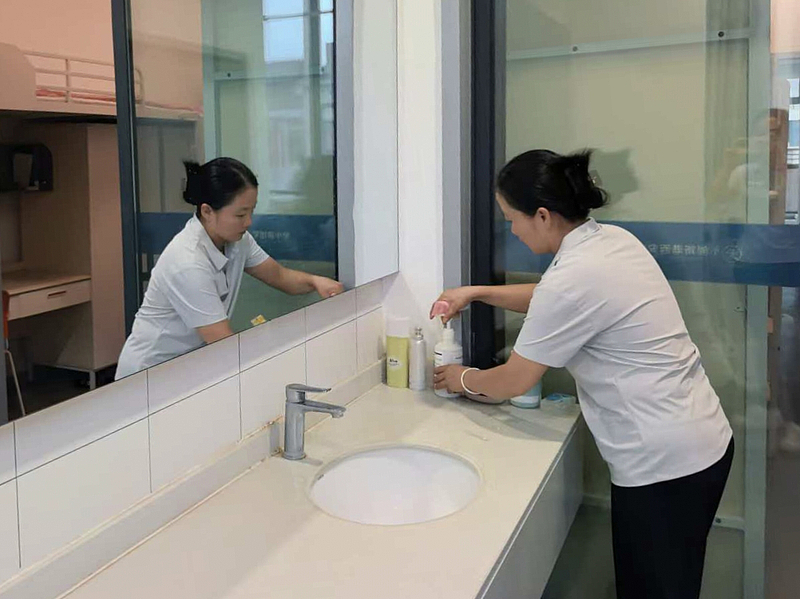 水電正常、設施齊全……這些看似平凡的日常,背后是物業(yè)工作者無數(shù)次的仔細排查檢修。開學前夕,灃西服務統(tǒng)籌推進基礎設施檢修與提升,全面完成各樓宇空調(diào)、水電、門窗、桌椅等設施維修保養(yǎng),并對配電室、水泵房等關鍵設備間進行系統(tǒng)排查,確保滅火器、消火栓等設備完好有效,及時消除安全隱患,保障各類設施在新學期安全、穩(wěn)定、高效運行。宿舍管理員也同步行動,逐間查驗宿舍水電、家具設備,實時跟進維修整改進度,并開展宿舍清潔與布置,提前通風換氣,讓返校的學子推開門就能感受到“家”的溫馨。