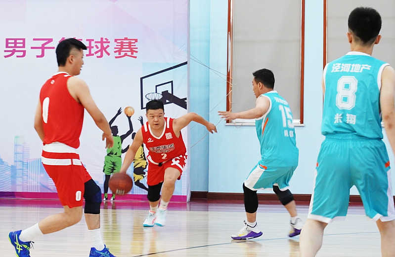 隨著裁判的哨聲響起,比賽揭幕戰在灃西集團和涇河地產之間打響。運動員們矯健的身影在球場上不斷穿梭,突破和防守輪番開展,運球、傳球、跳投,一個個靈巧的轉身和精彩的投籃,贏得現場觀眾陣陣喝彩。