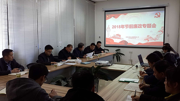 2月13日下午,陜西省灃西置業有限公司召開2018年春節廉潔過節學習會議,公司總經理葛上義同志主持會議。